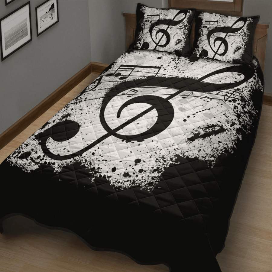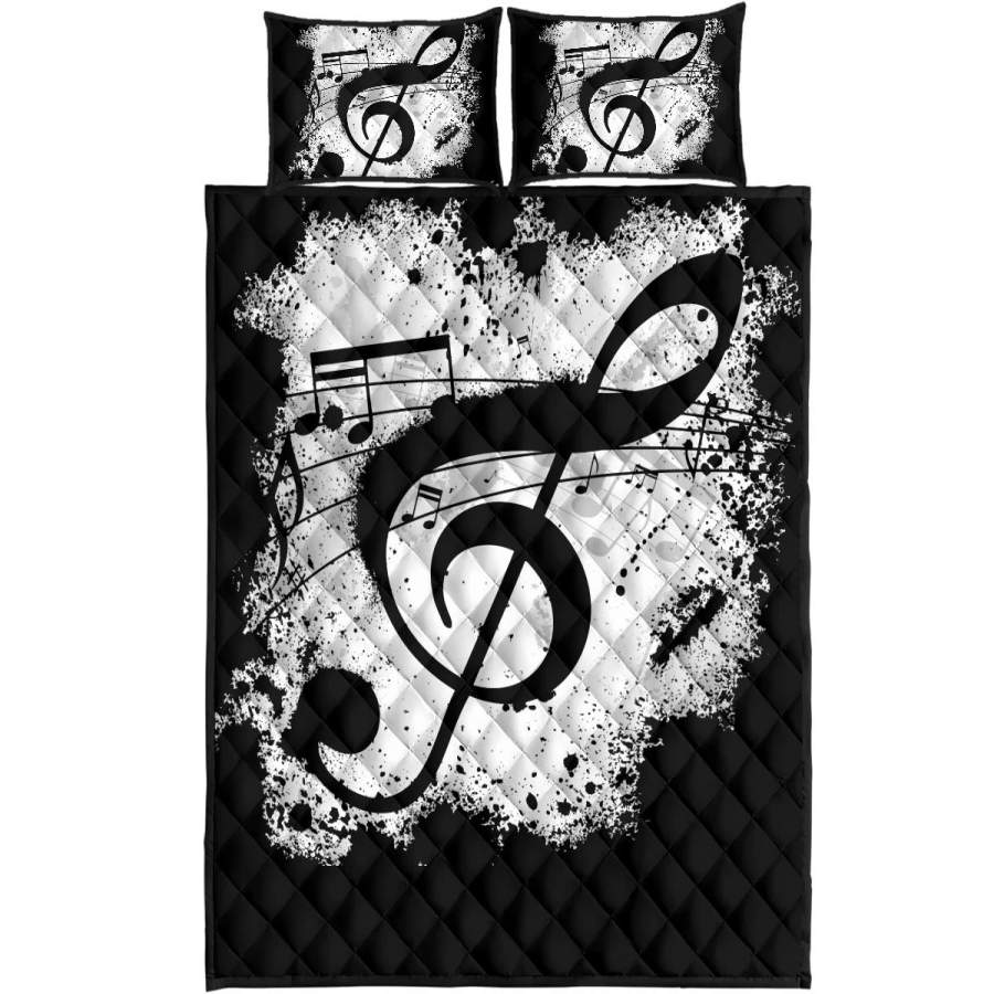 Black And White Treble Clef Music Quilt Bed Set