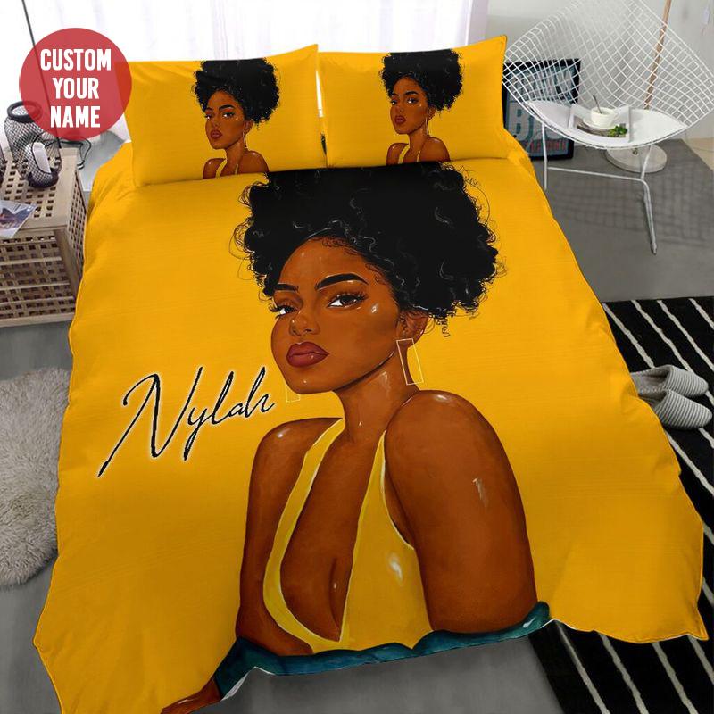 Black Cool Girl Yellow Top Personalized Name Duvet Cover Bedding Set #1109L