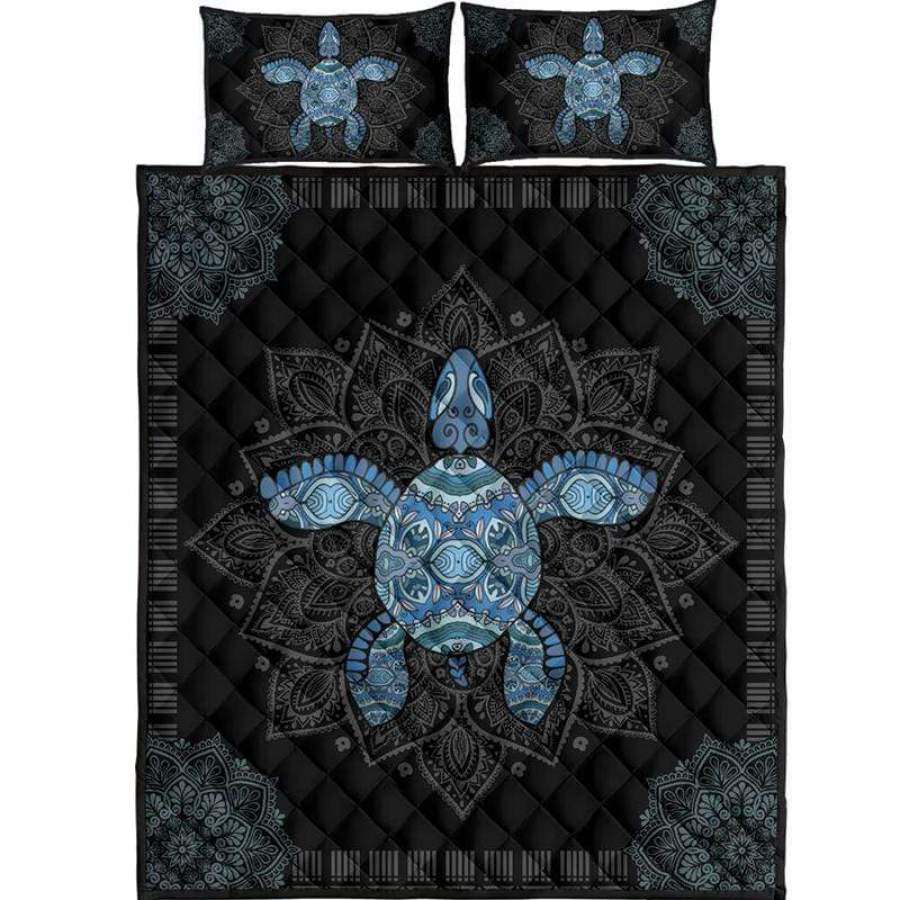 Blue Turtle Mandala Quilt Bed Set #2109H