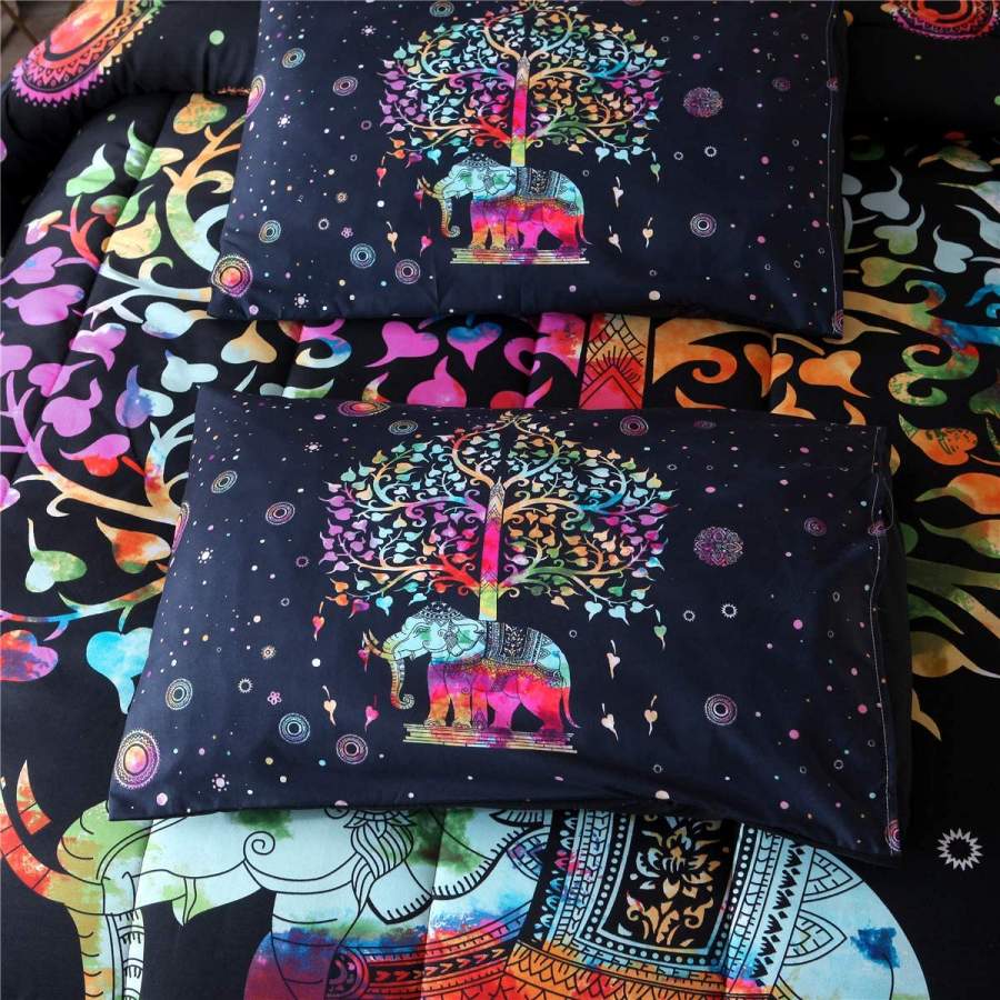 Bohemian Mandala Exotic Multi Elephant Pattern with Tree Boho Quilt Bed Set #H