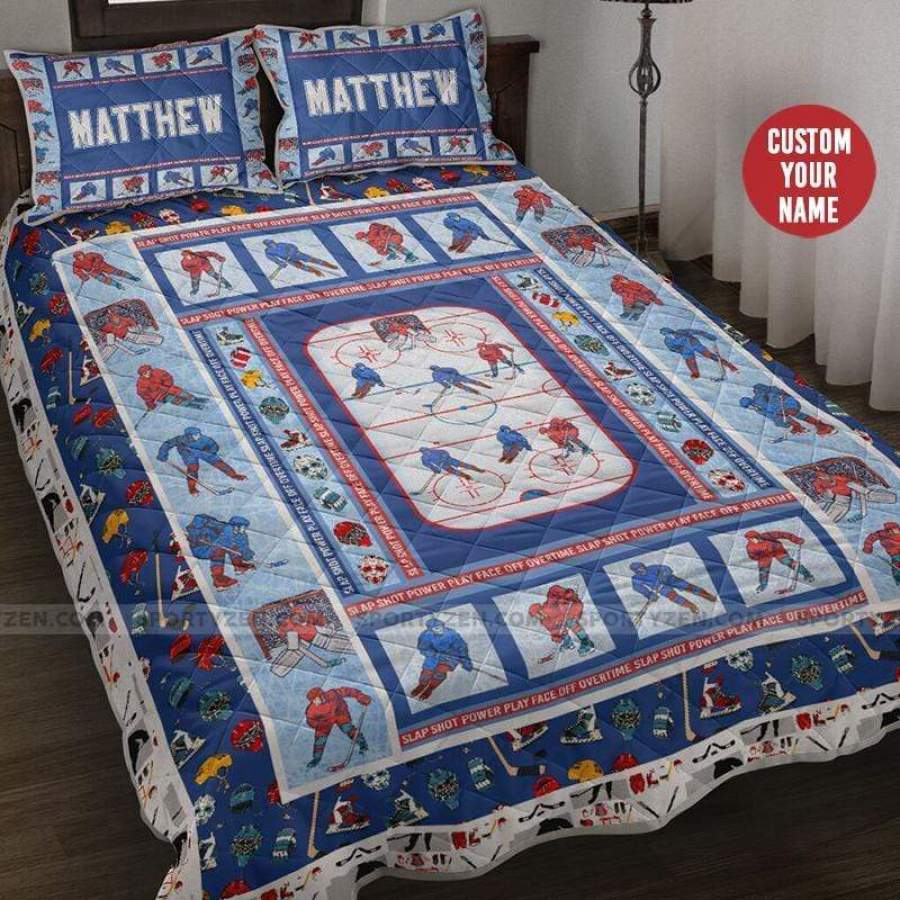 Custom Hockey Player Quilt Bed Set With Name #2205H