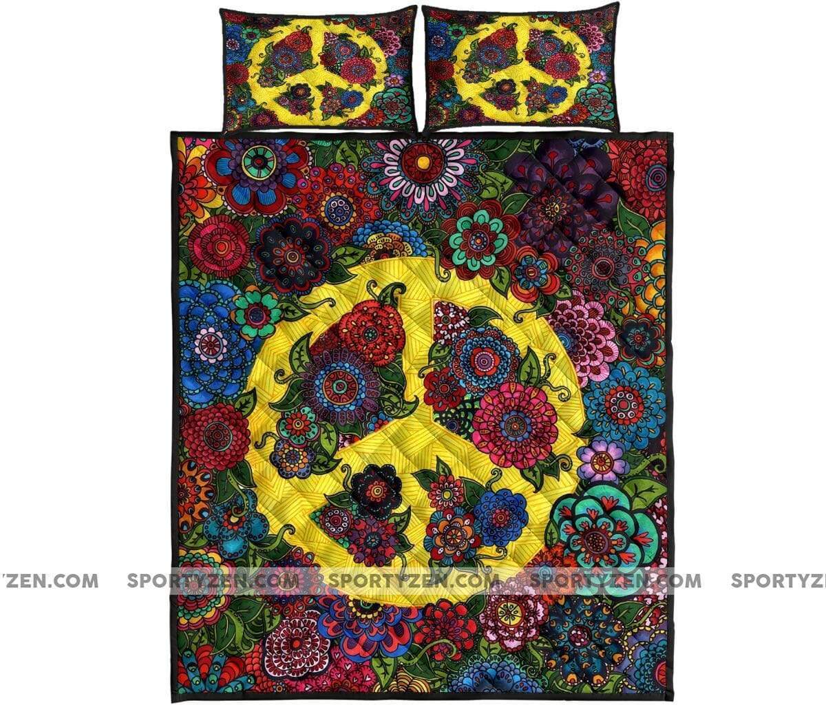 Hippie Flower Child Peace Quilt Bed Set #1106H