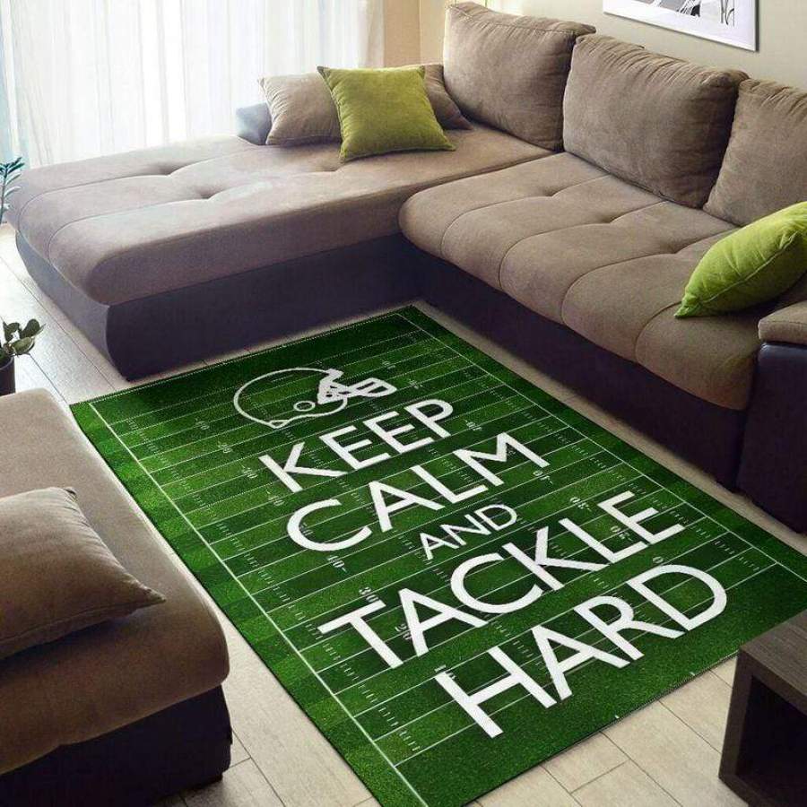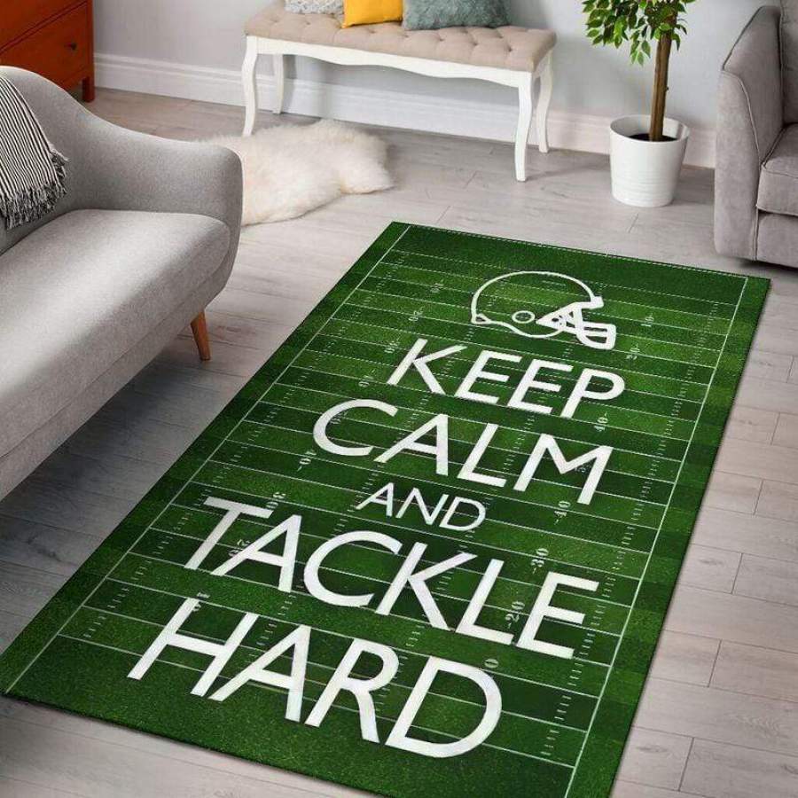 Keep Calm And Tackle Hard Football Rectangle Rug #309v