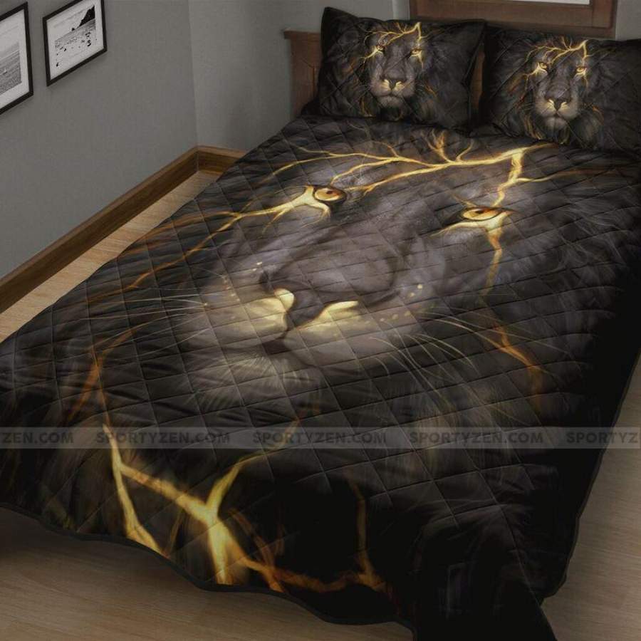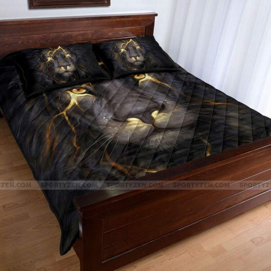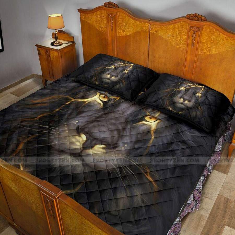 Lion Face Black and Gold Quilt Bed Set #3006H