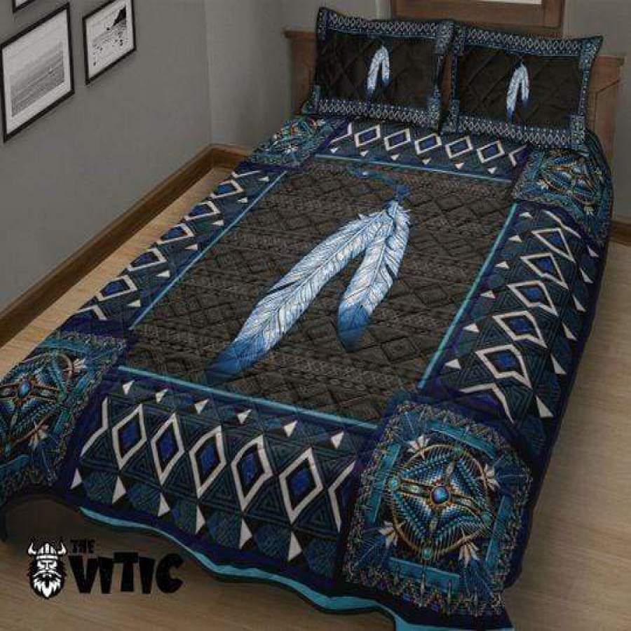 Native American Feather Navy Quilt Bedding Set Quilt Bed Set