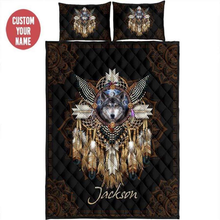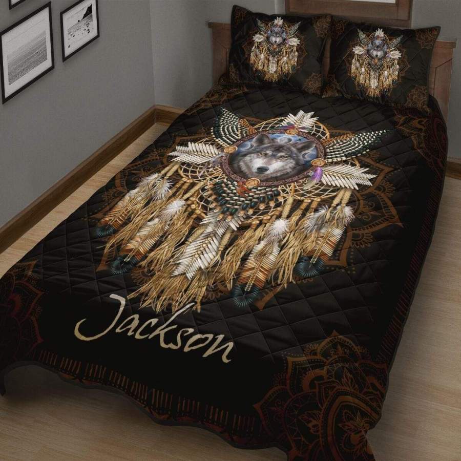 Native Wolf Bohemian Quilt Bed Set #318l