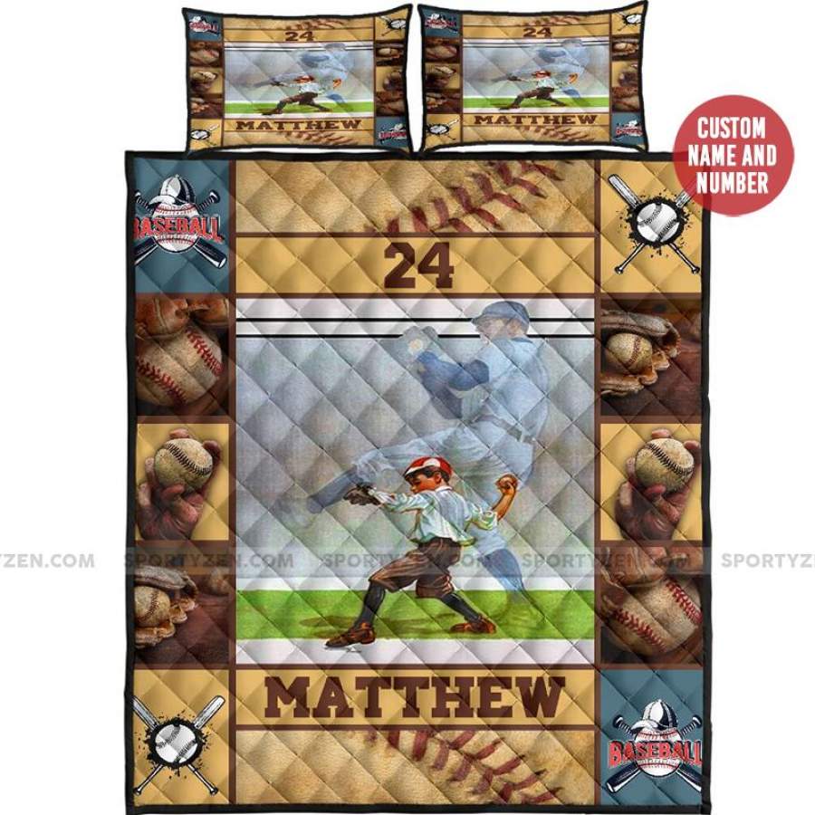 Personalized Baseball Player Custom Name And Number Quilt Bed Set #606H