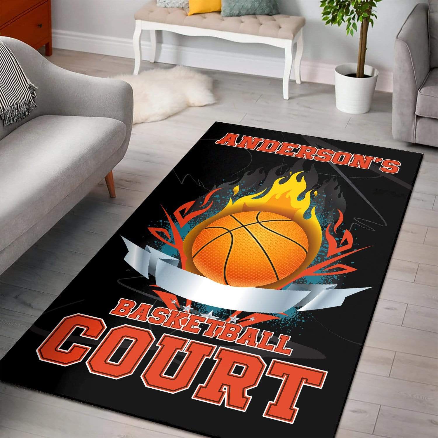 Personalized Basketball Court Rectangle Rug #DH