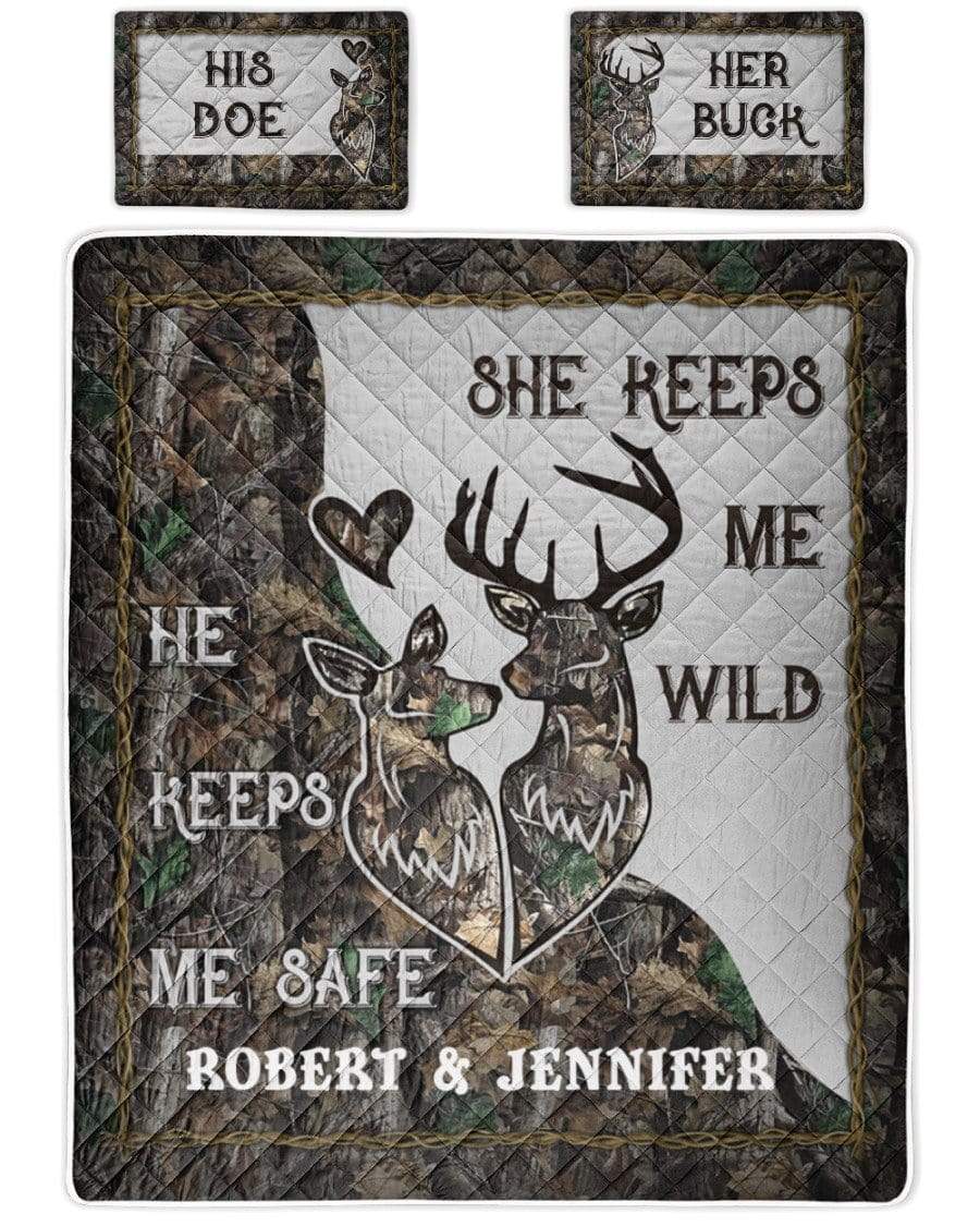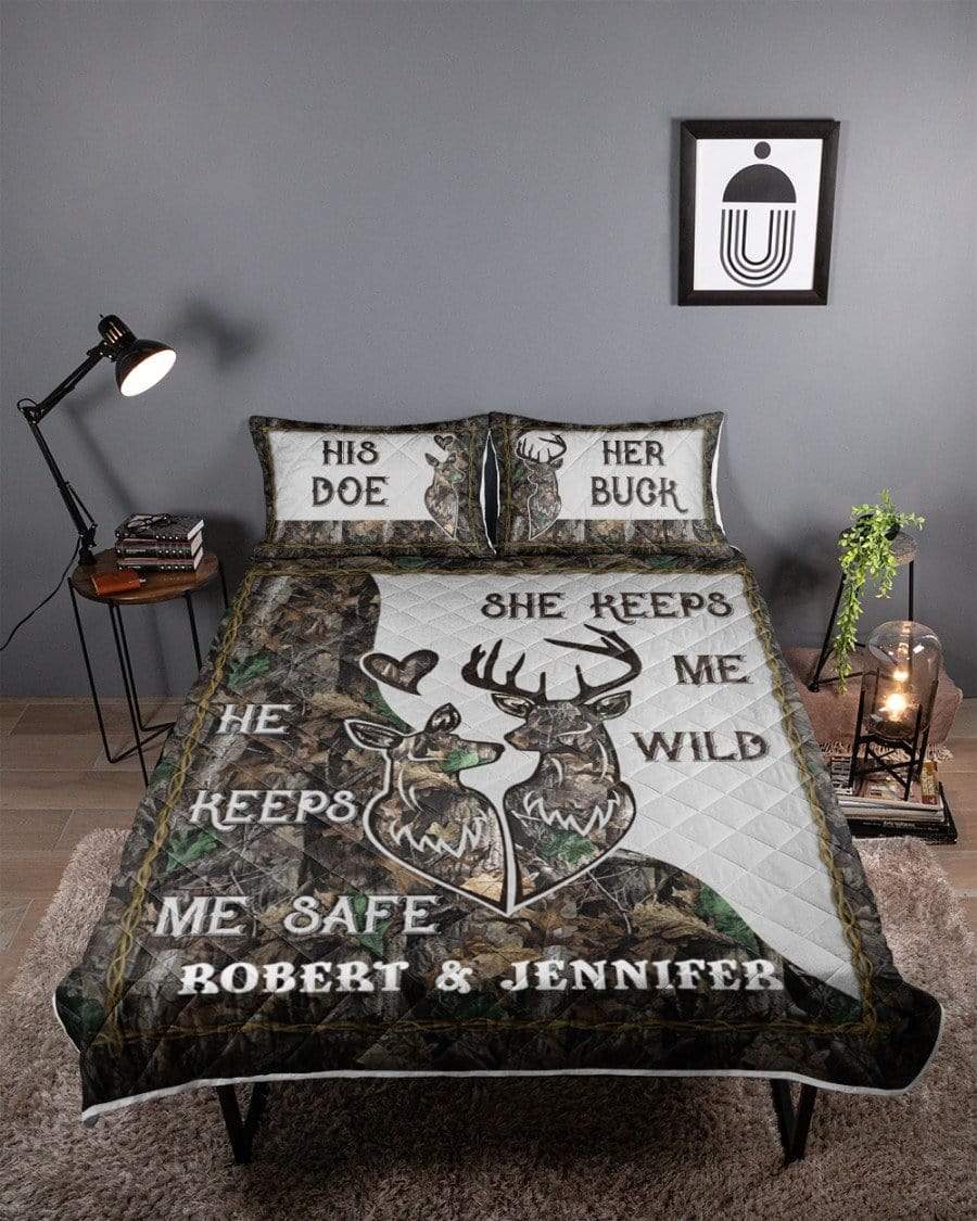 Personalized Name He keeps me safe She keeps me wild Bedding Set Quilt Bed Set