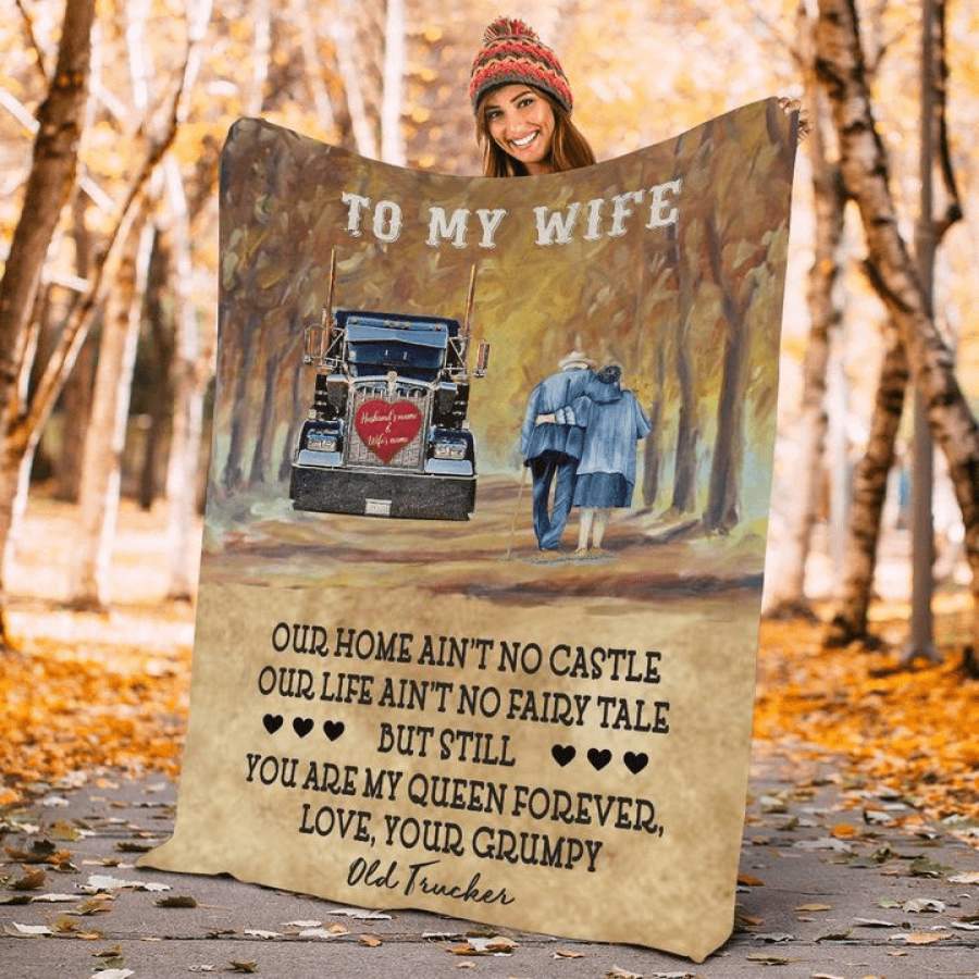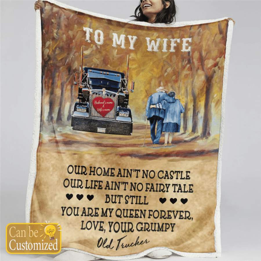 Truck driver, To my wife, you are my queen forever, love your your grumpy 3D blankets Custom name #V